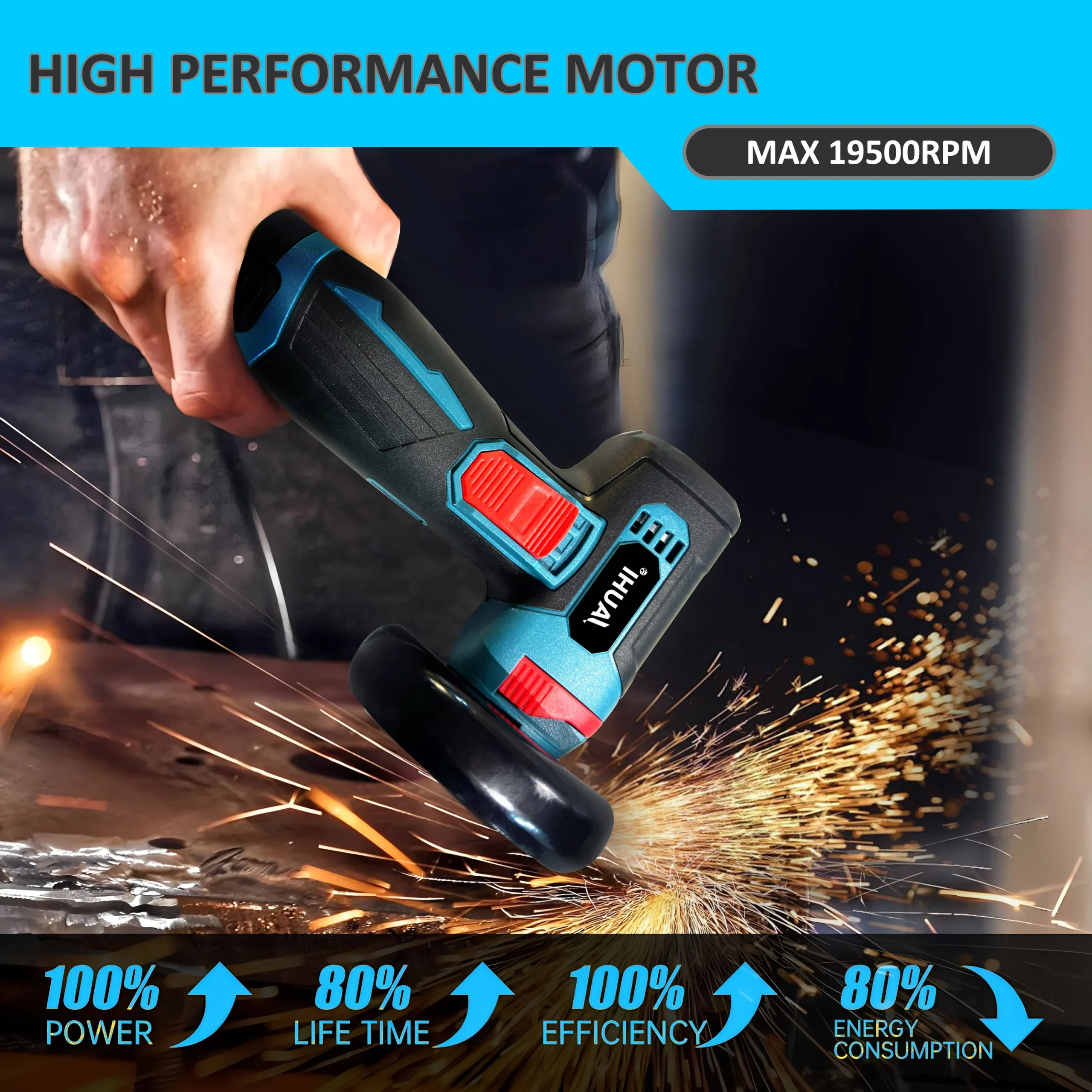 - Puissante et rapide : Moteur brossé haute vitesse atteignant 10 000 RPM, permettant des coupes et meulages rapides.